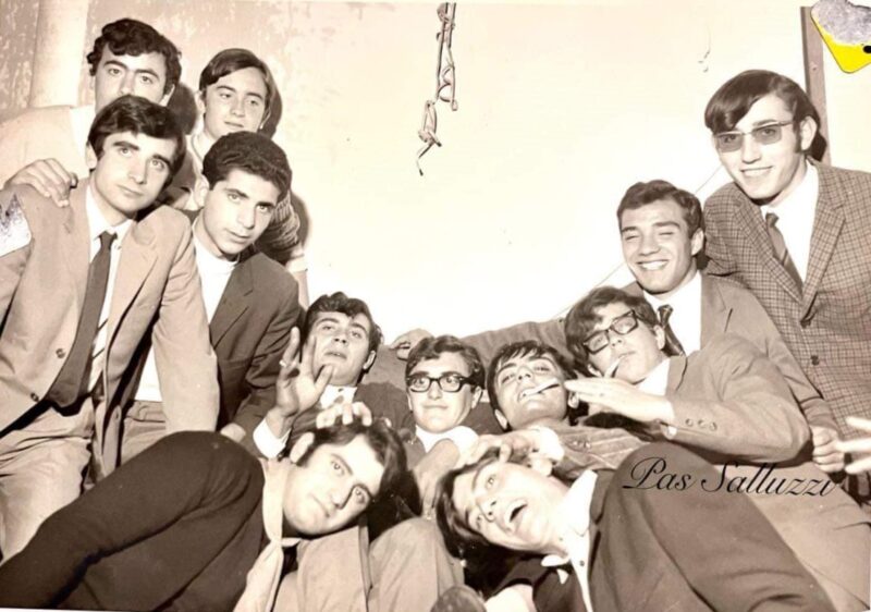 Festa per il mio diploma: dietro a sx Gino Pompa e Felicino Lapelosa. Al centro Ciro Ricciardi, Pinuccio Bove, Gianni Salluzzi, Gigino Mandara, mio fratello Tonino, Tonino Alfisi, Rino Pappalardo e Tonino Cardinale. In basso Michele Cardano e Angelo Lasala.