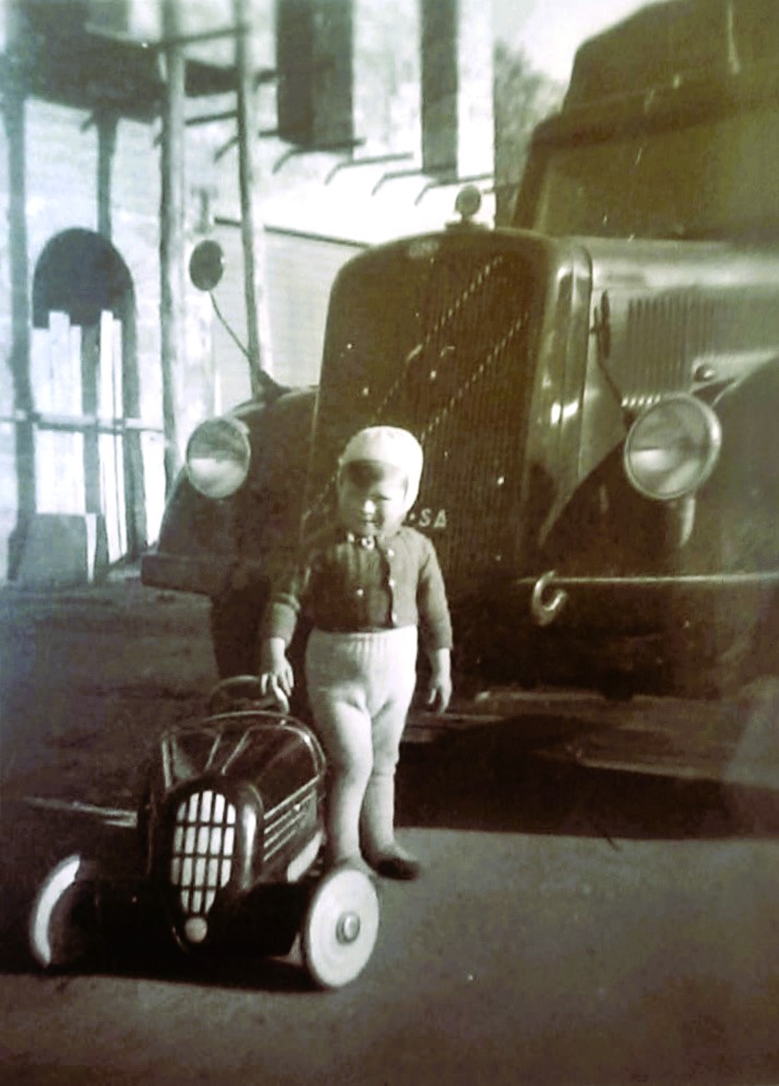 Auto da corsa, piloti in erba e grande camion, a Sala Consilina sulla Nazionale, un giorno di novembre.