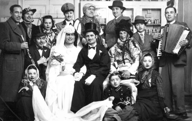 In questa foto ci sono nonno Biagio Romano sulla destra vestito da Contadina, nonna Felicia Bruno a fianco con i baffi vestita da uomo e mia madre Rosa più in basso vestita da ragazzo, a fianco del fisarmonicista, aveva 12 anni.