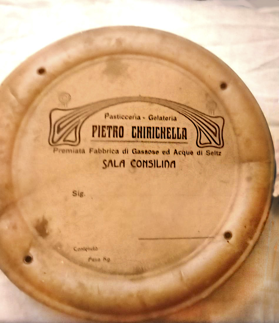 Un contenitore per torte usato da Pietro Chirichella nonno di suo marito Pietro Frezzella.