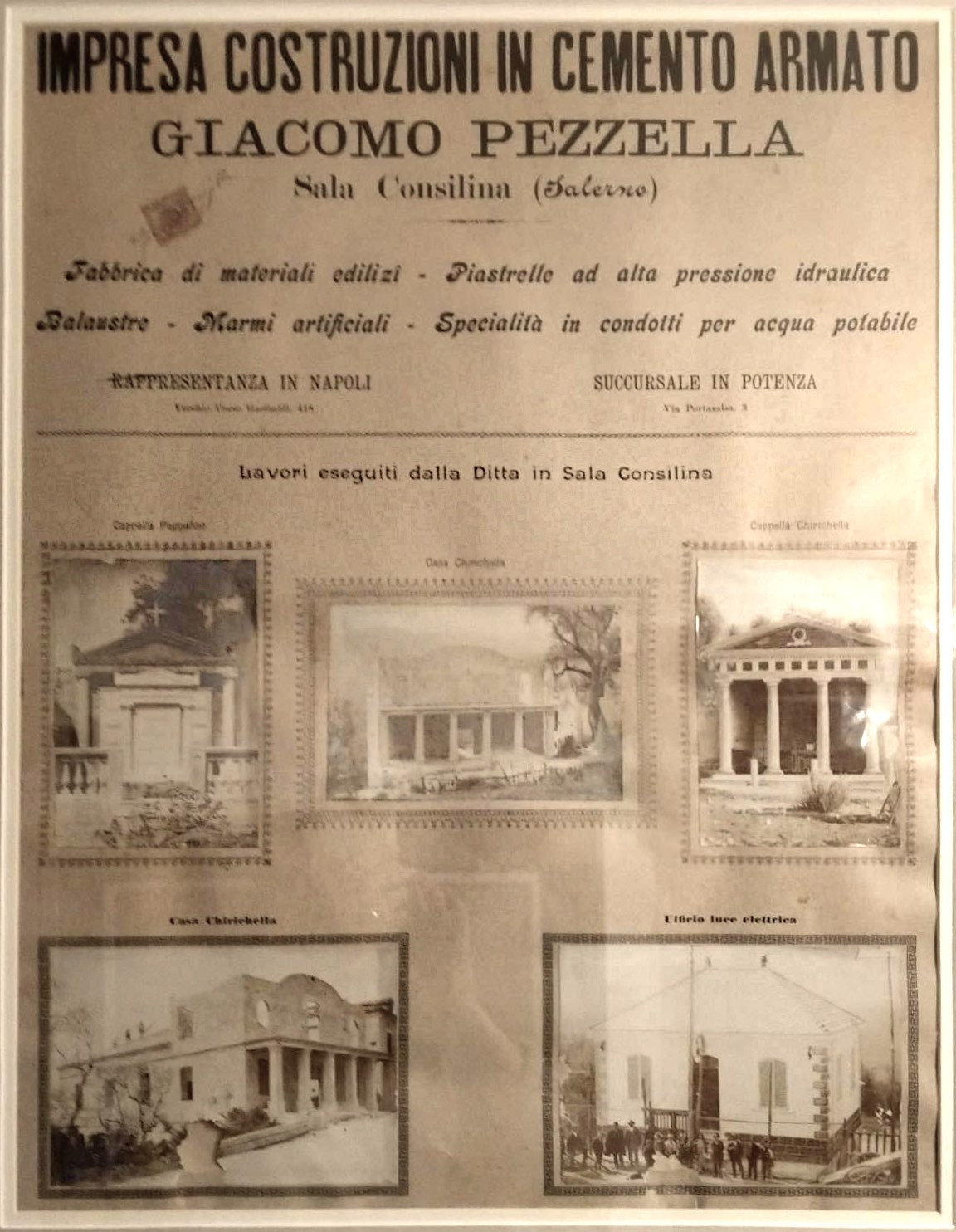 Nel manifesto oltre a casa Chirichella c’è la loro Cappella e quella di Pappafico e poi la casa elettrica, 1900 circa.