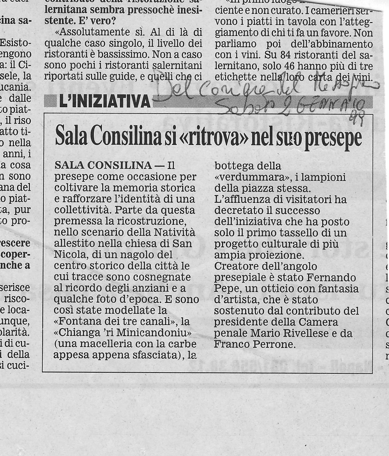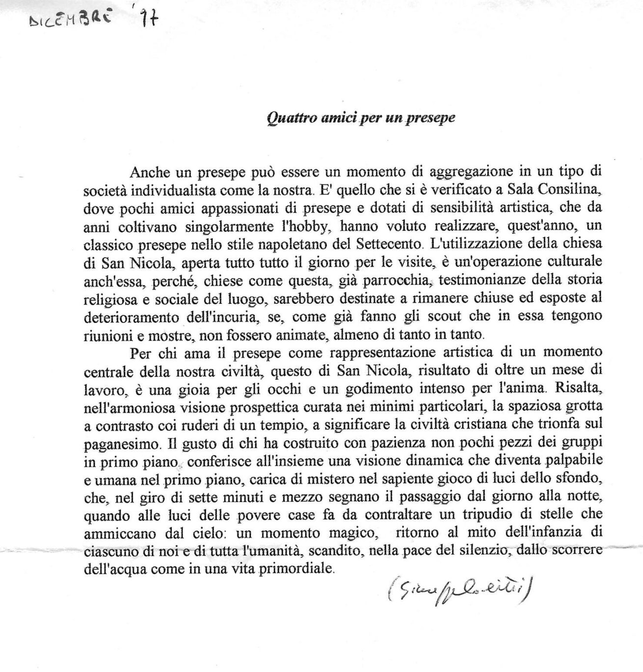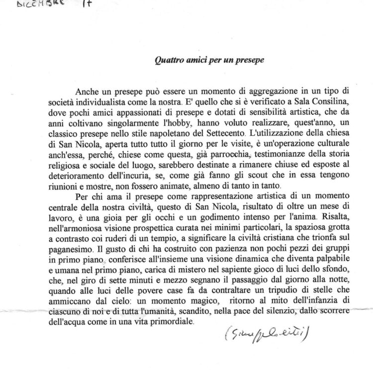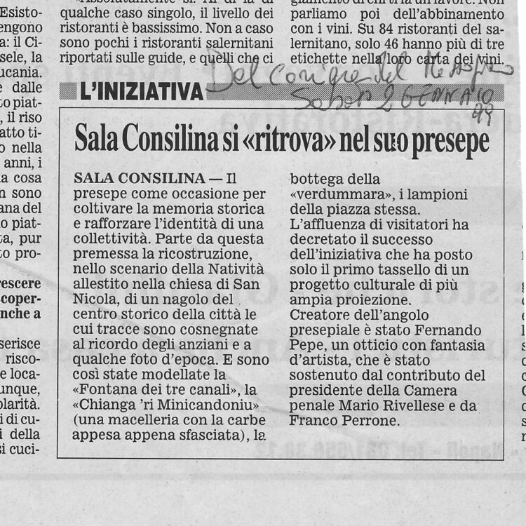 Per due anni consecutivi, nella chiesa di San Nicola, fu allestito il presepe che doveva rimanere stabile ma fu invece distrutto. Il secondo presepe attirò molte persone del Vallo che apprezzarono molto la novità dell’ambientazione.