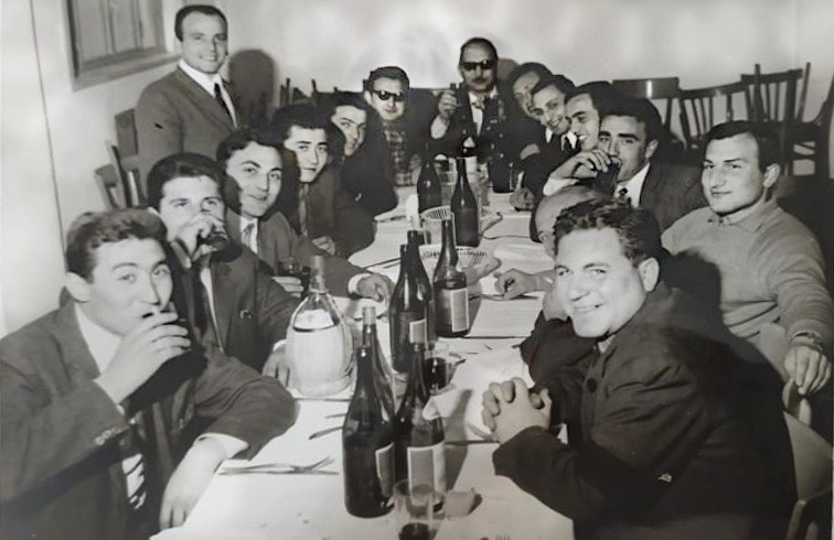 Amedeo vicino al compare Giuseppe Di Benedetto e a capo tavola il ragioniere Davide Cozzi.