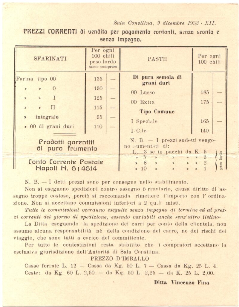 Prodotti e prezzi del Pastificio Fina a Sala Consilina.