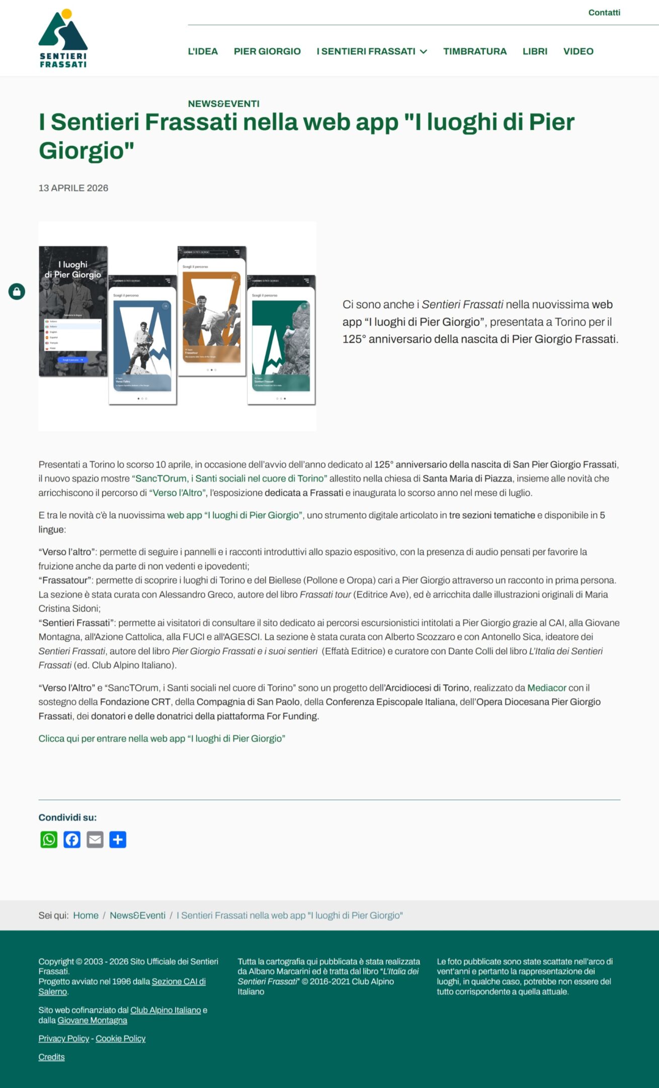 I Sentieri Frassati nella web app “I luoghi di Pier Giorgio” (by dr Antonello Sica) I luoghi di Pier Giorgio